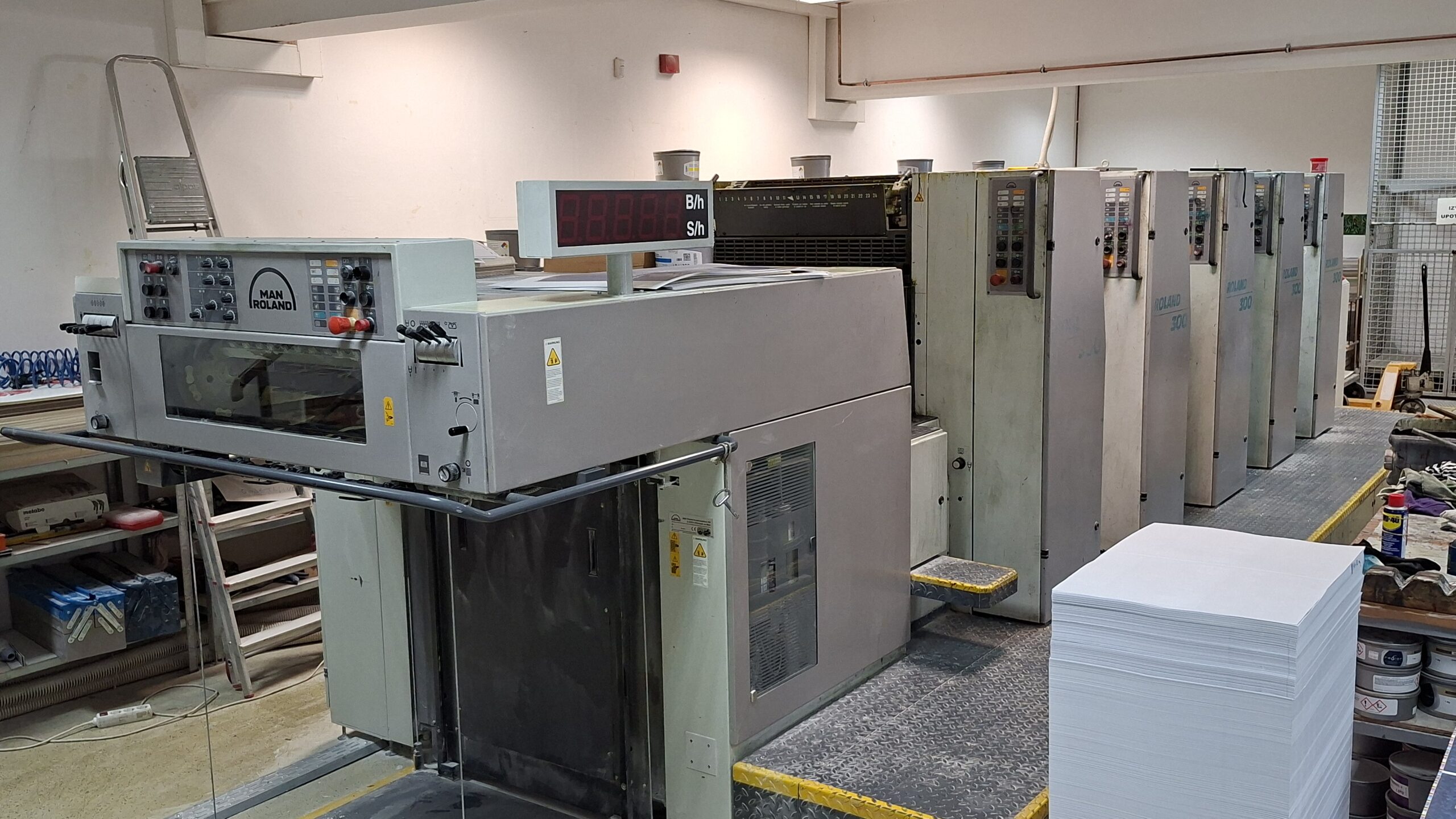 Peterobojni offsetni stroj (prošireni B2 format) opremljen je računalom s programskom podrškom za automatsko podešavanje bojanika DIPS Print Flow – poboljšana kontrola kvalitete tiska i skraćeno vrijeme pripreme stroja.